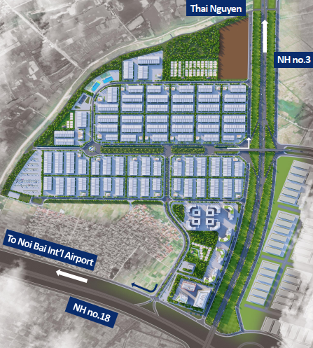 Điều kiện địa lý: Nền đất chịu lực 1.7kg/cm2, không có lịch sử bị lụt hoặc bão, thoát nước qua trạm Vọng Nguyệt ra sông Cà Lồ