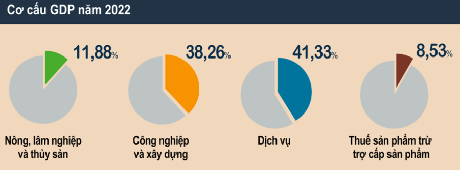 Một số ngành dịch vụ thị trường tăng cao, đóng góp nhiều vào tốc độ tăng tổng giá trị tăng thêm toàn nền kinh tế như ngành bán buôn, bán lẻ tăng 10,15% so với năm trước, đóng góp 0,97 điểm phần trăm; ngành vận tải kho bãi tăng 11,93%, đóng góp 0,69 điểm phần trăm; ngành dịch vụ lưu trú và ăn uống tăng cao nhất trong khu vực dịch vụ với mức tăng 40,61%, đóng góp 0,79 điểm phần trăm; hoạt động tài chính, ngân hàng và bảo hiểm tăng 9,03%, đóng góp 0,53 điểm phần trăm; ngành thông tin và truyền thông tăng 7,80%, đóng góp 0,5 điểm phần trăm.