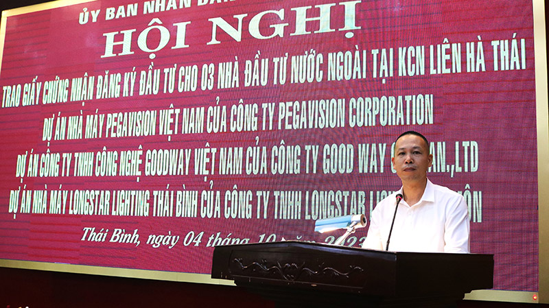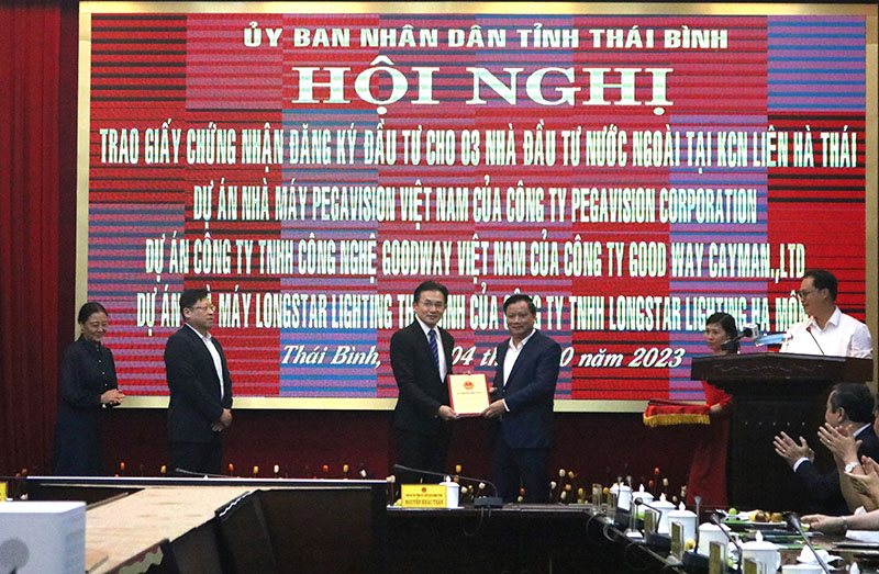 Phát biểu tại buổi lễ, Chủ tịch UBND tỉnh Thái Bình Nguyễn Khắc Thận khẳng định: Ba dự án sản xuất của Pegavison, Goodway và Longstar Lighting đều sử dụng công nghệ tiên tiến, hiện đại, thân thiện với môi trường đã đi đúng định hướng thu hút đầu tư của tỉnh, là minh chứng rõ nét trong việc hiện thực hóa thu hút đầu tư vào Khu kinh tế Thái Bình và KCN Liên Hà Thái. Điều đó khẳng định tỉnh Thái Bình, Khu kinh tế Thái Bình đã và đang là điểm đến hấp dẫn, đầy triển vọng, đáp ứng yêu cầu của các nhà đầu tư.