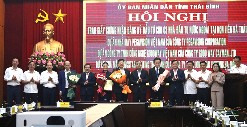 Chiều 4/10, UBND tỉnh Thái Bình tổ chức Lễ trao Giấy chứng nhận đăng ký đầu tư cho 3 dự án đầu tư tại Khu công nghiệp Liên Hà Thái (Khu kinh tế Thái Bình), tổng vốn đầu tư 270 triệu USD.