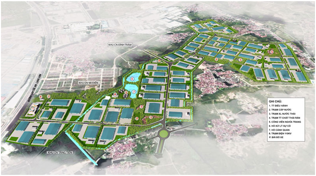 Hệ thống cấp nước: nước cấp cho KCN lấy từ đường ống cấp nước D500 của Công ty Cổ phần đầu tư hạ tầng DNP Bắc Giang;