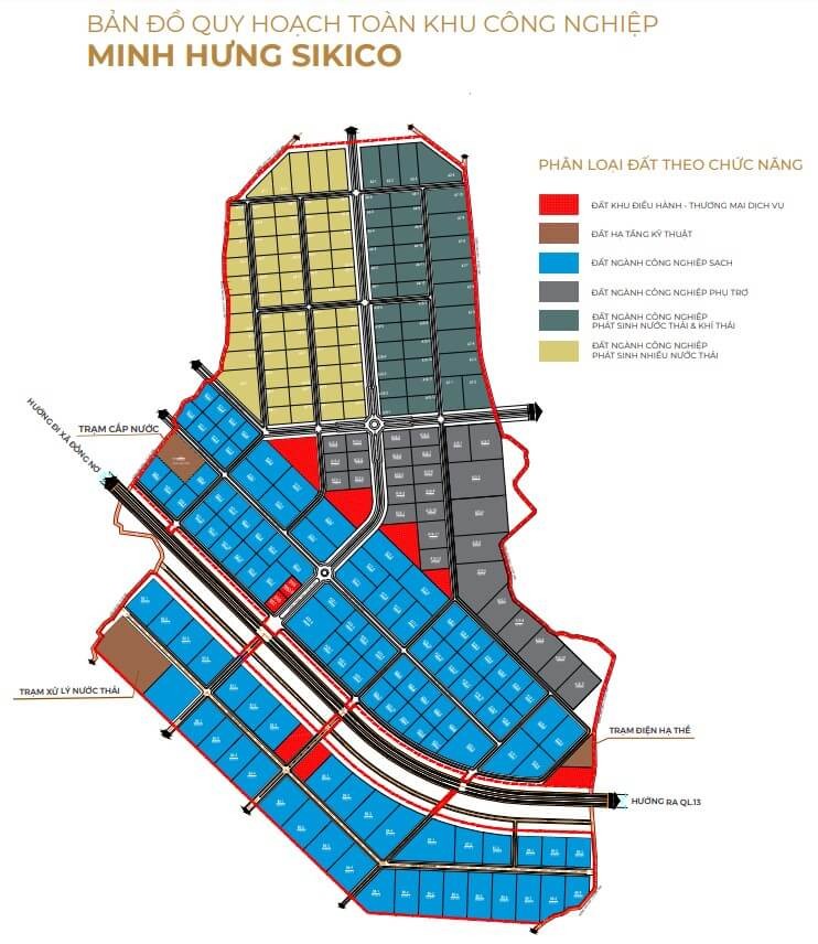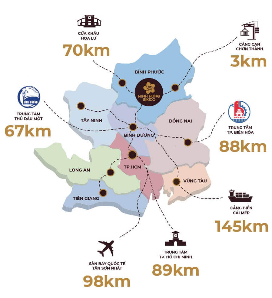 Minh Hung Sikico Industrial Park (Binh Phuoc) stands out with a total area of 655 hectares, developed as an integrated green industrial – commercial – service complex with an investment of over VND 3,000 billion. The project enjoys a strategic location adjacent to the Tram Forest and the Minh Hung – Dong No road, with convenient connections to National Highway 13 and the North–South Expressway. It is approximately 100 km from Ho Chi Minh City, with easy access to international airports and major seaports, offering strong logistics advantages. The park features modern infrastructure, including a stable 110/22kV power supply, 24/7 clean water system, and environmentally friendly biological wastewater treatment technology. Internal roads range from 20–40 meters in width, while 146 hectares of green space account for about 22% of the total area. Additional amenities include expert housing, restaurants, and 24/7 security services. With a high occupancy rate and a green, clean environment, Minh Hung Sikico Industrial Park has become an attractive destination for strong FDI inflows compared to neighboring industrial zones.