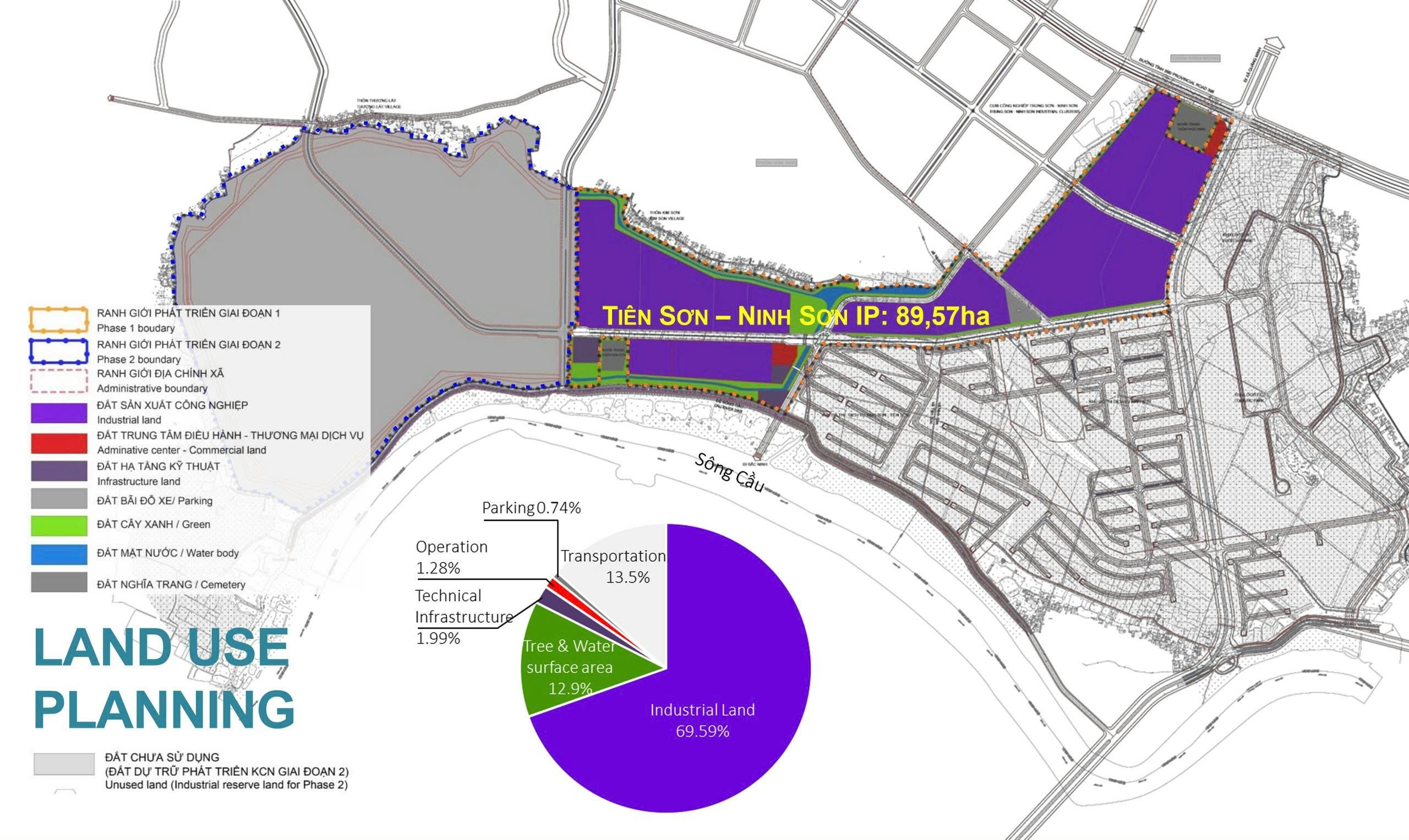 Tien Son – Ninh Son Industrial Park holds a strategic location in Viet Yen Town of Bac Ninh Province, situated within the Northern Vietnam key economic region with convenient connectivity via major highways, expressways, and regional logistics networks. The project is well planned to attract production and assembly of electrical and electronic devices, computers, mobile phones, and high-tech components, contributing to a modern industrial value chain. Easy access to Hanoi market, Hai Phong seaport, and Noi Bai International Airport helps reduce transportation costs for investors. In addition, attractive investment incentives and strong linkages with surrounding industrial and manufacturing clusters provide competitive advantages, drawing both domestic and foreign investors in the expanding manufacturing landscape of northern Vietnam.
