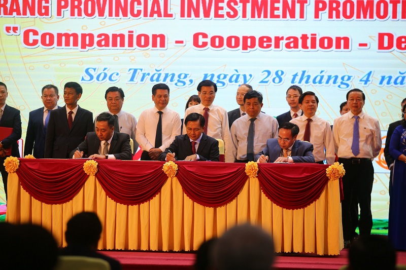 Tại Hội nghị, tỉnh Sóc Trăng đã trao quyết định chủ trương đầu tư, giấy chứng nhận đăng ký đầu tư cho 4 dự án và ký 18 bản ghi nhớ về khảo sát, nghiên cứu đề xuất dự án đầu tư với tổng mức đầu tư đăng ký trên 200 ngàn tỷ đồng. Trong đó, riêng 4 dự án được trao quyết định chủ trương đầu tư, giấy chứng nhận đăng ký đầu tư có tổng vốn đăng ký đầu tư gần 12.079 tỷ.