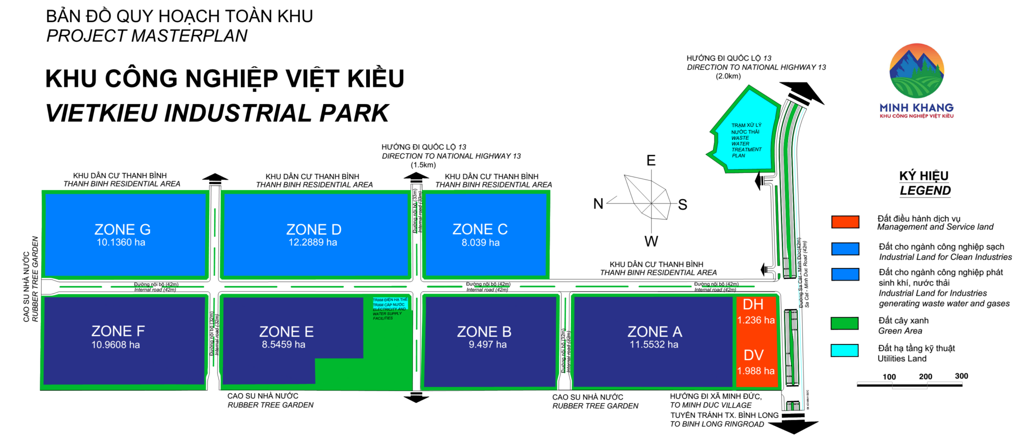 Viet Kieu Industrial Park stands out with its strategic location in Hon Quan District, approximately 100 km from Ho Chi Minh City. The park benefits from convenient connectivity to National Highway 13 and the North–South Expressway, facilitating efficient logistics and regional transportation.